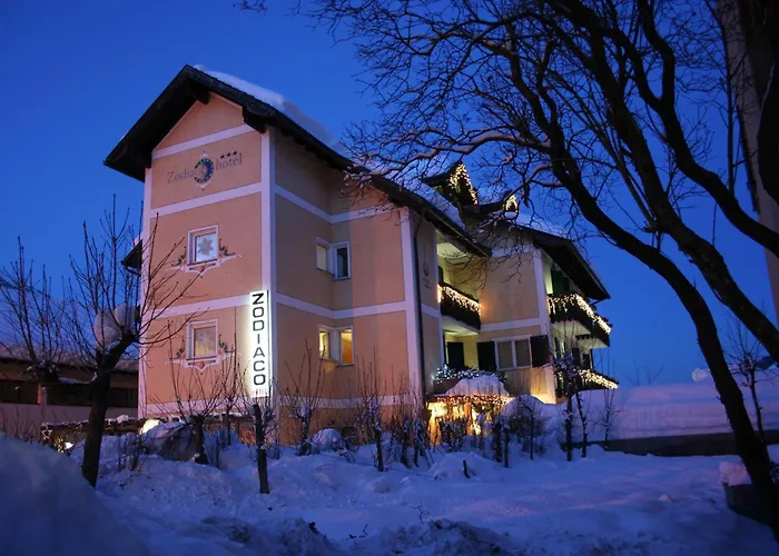 L'Hotel Allo Zodiaco è una struttura a conduzione familiare situata a 8 km dal Lago di Molveno, con splendidi giardini e WiFi gratuito. Ogni camera è curata e offre accesso diretto alle piste e al deposito sci. Gli ospiti possono gustare i piatti tipici serviti nel ristorante della struttura.
